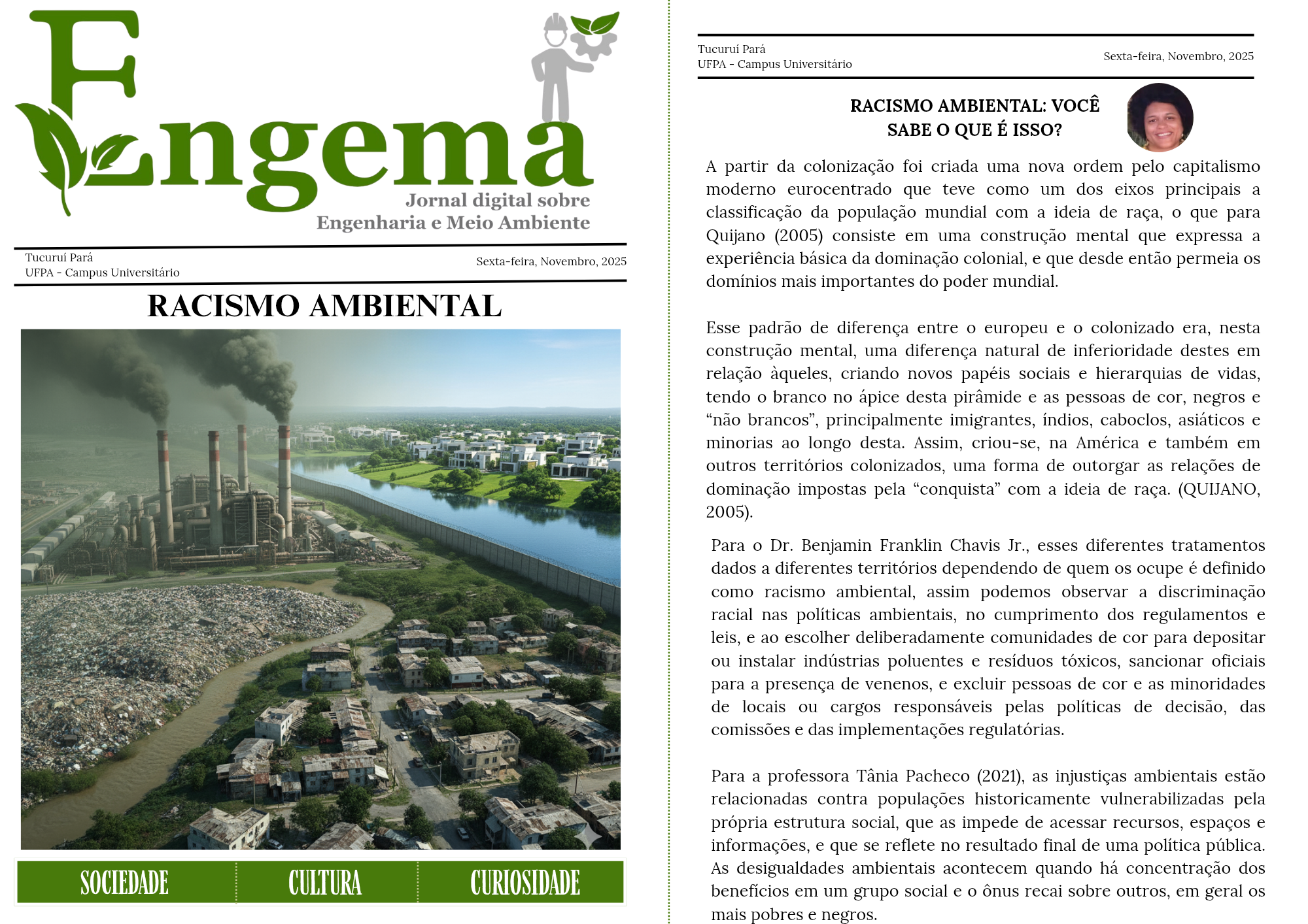 O ENGEMA em Foco, em sua terceira edição, frequentemente direcionada a regiões ocupadas por populações de baixa renda e grupos historicamente marginalizados, evidencia o racismo ambiental no Brasil