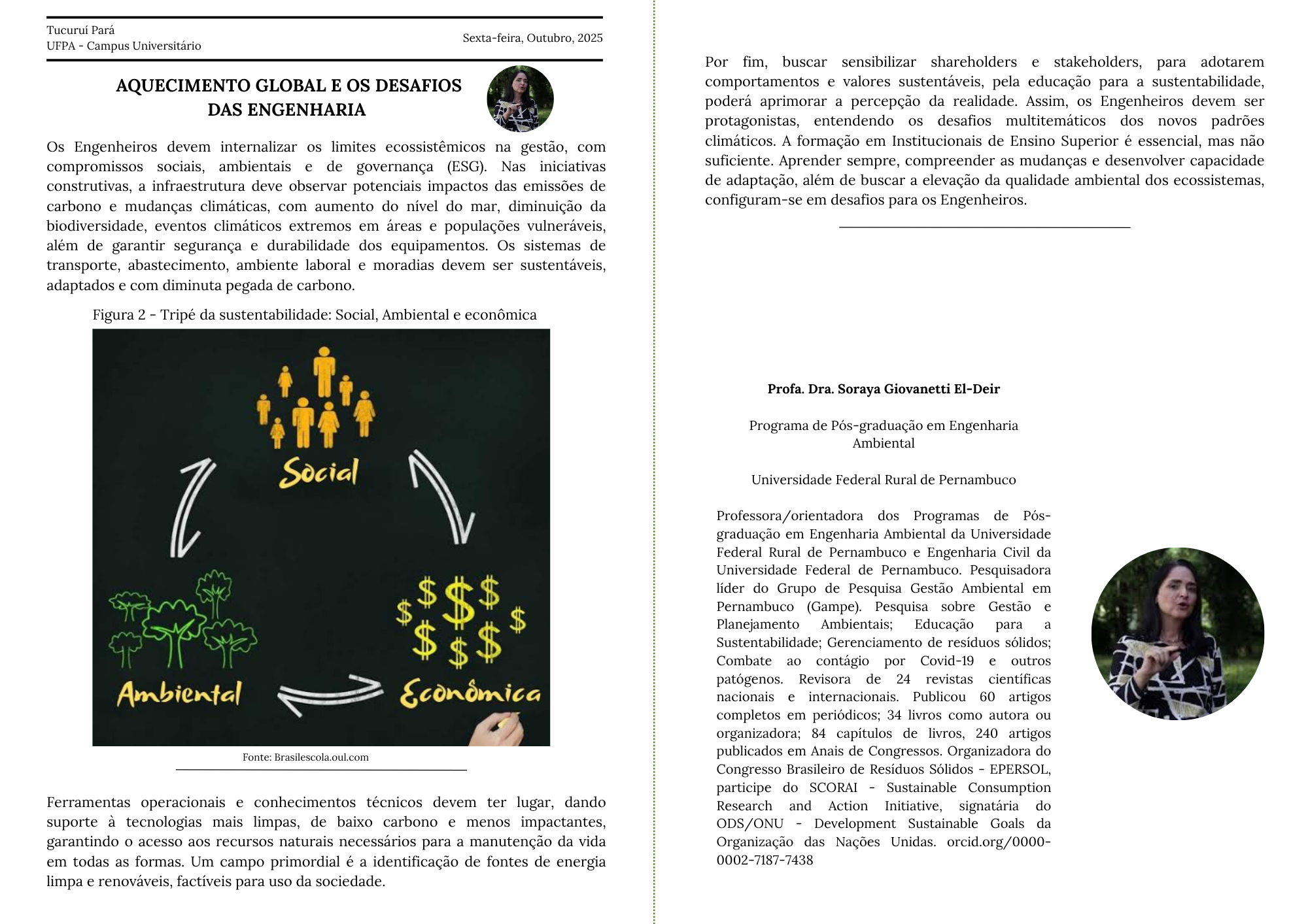A Profa. Dra. Soraya Giovanetti El-Deir apresenta o artigo “Aquecimento Global e os Desafios das Engenharias”, que discute a necessidade de soluções inovadoras e sustentáveis diante do avanço do aquecimento global.