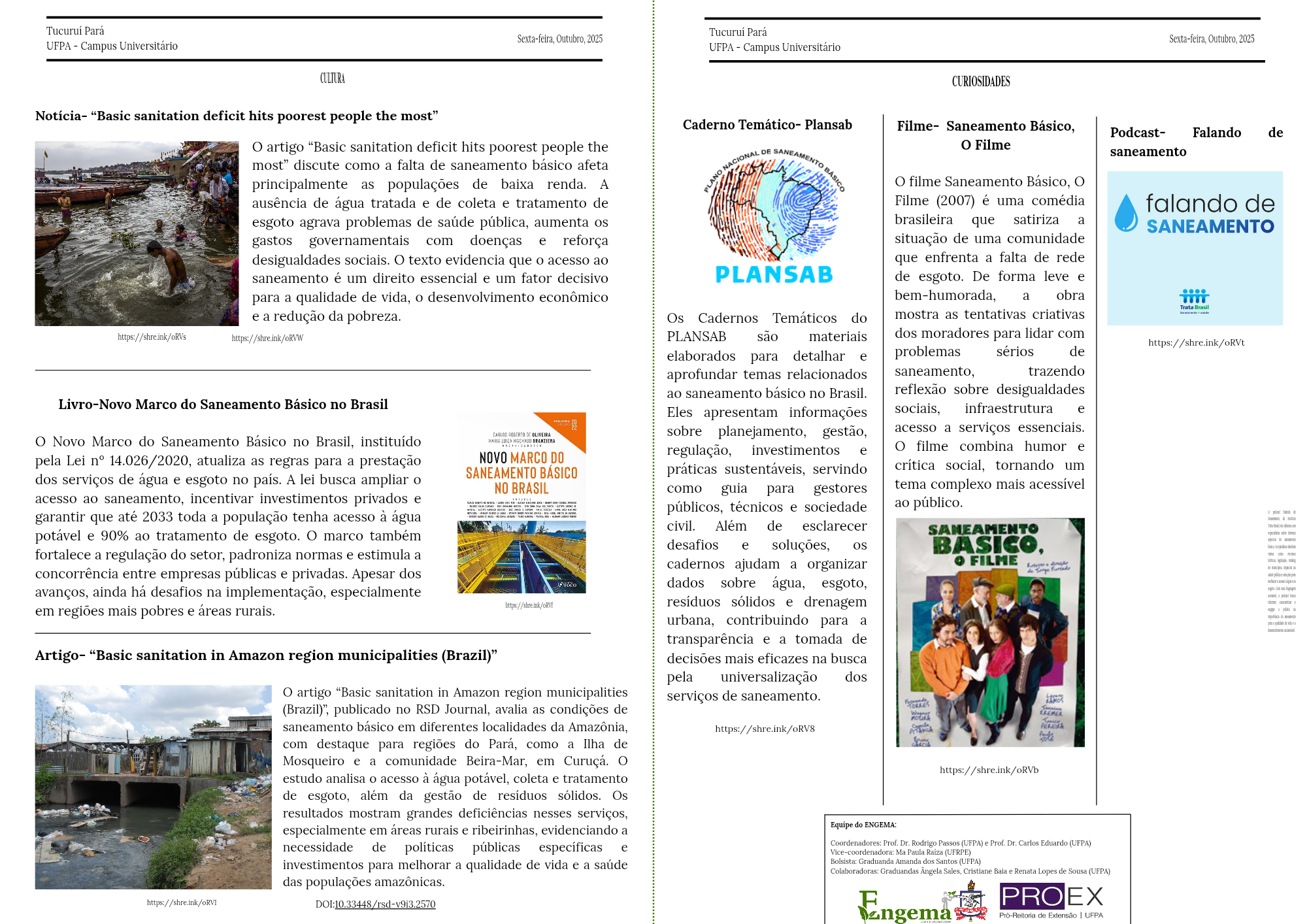 O segundo ENGEMA em Foco, em sua segunda edição, traz como destaque o tema Saneamento Básico, reforçando sua relevância para o desenvolvimento sustentável e para os desafios atuais das engenharias.